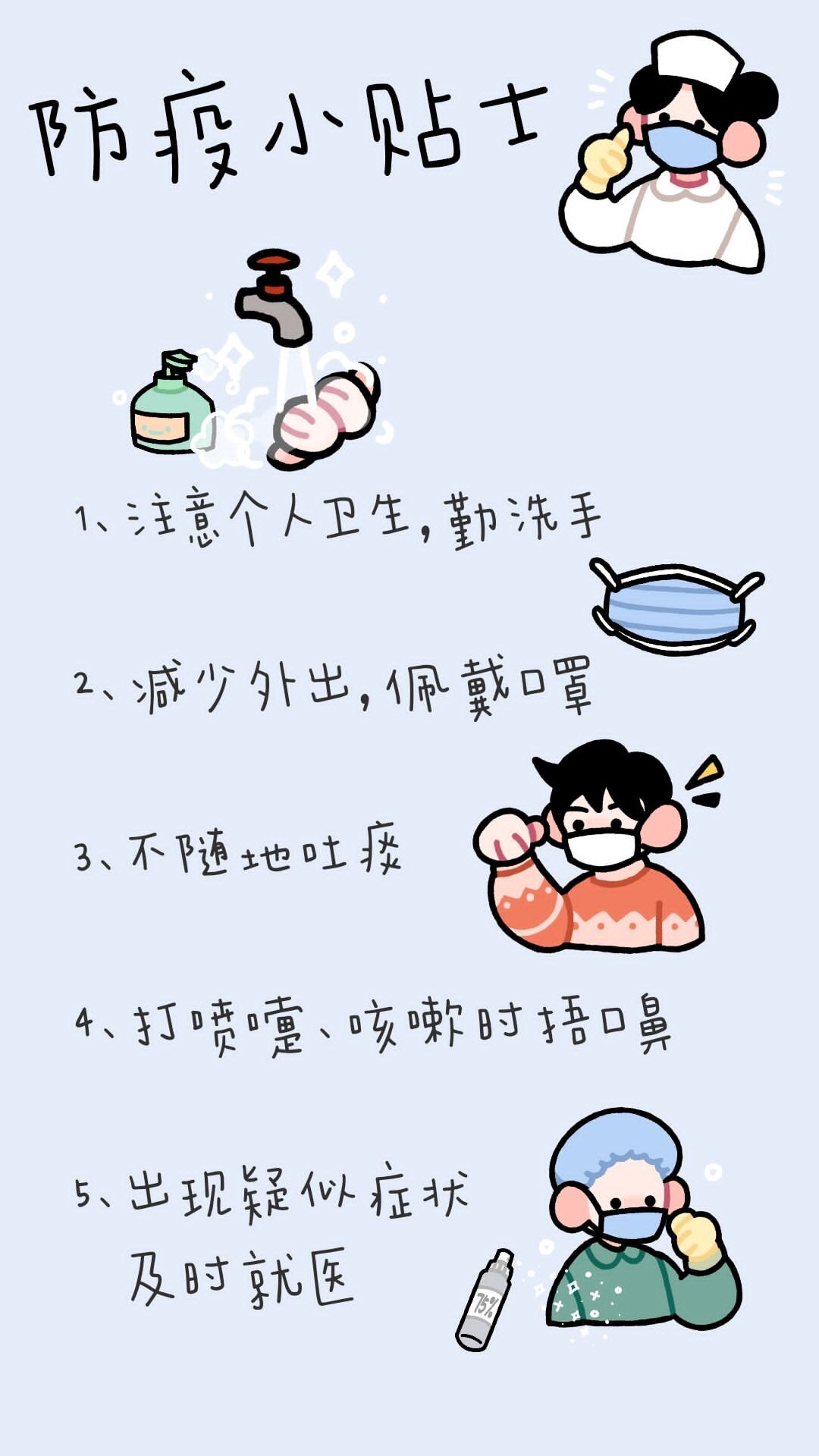 此次活动得到了员工的积极响应,短短两周,共收集到各种小贴士设计作品八十余份。同学们通过通俗易懂的漫画,简短有力的口号、温暖人心的话语鼓励大家在疫情期间建立“勤洗手”、“戴口罩”、“保持距离”良好安全卫生习惯,开启自律的学习生活,规范自身的行为,保障自身安全。