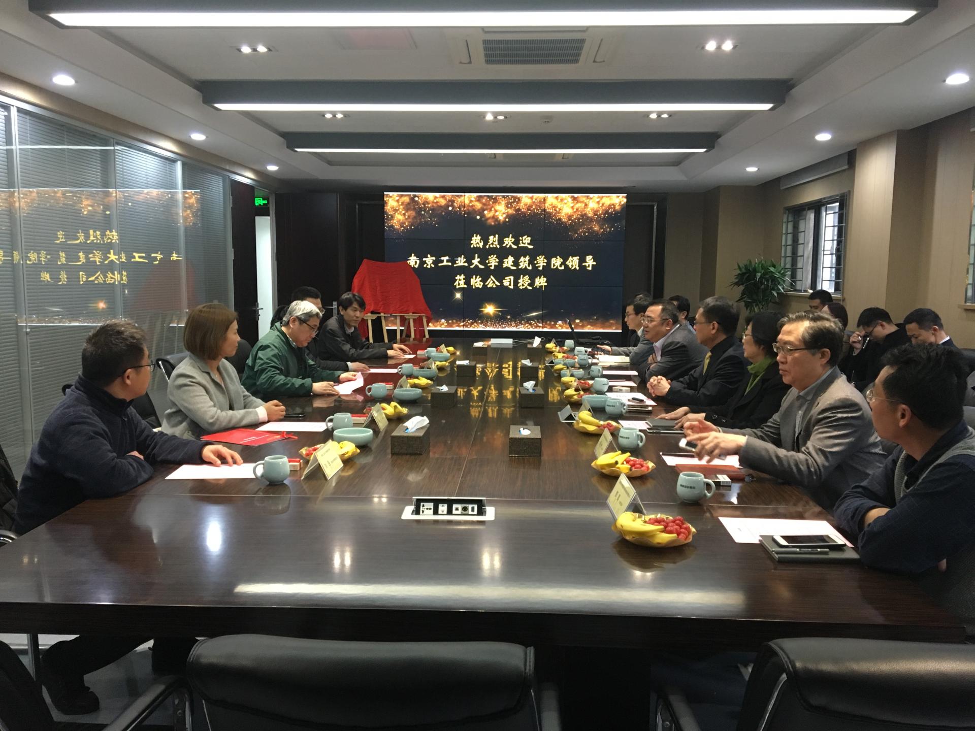 2019年4月10日下午,best365官网经理胡振宇、副经理方遥、党委副书记徐源、建筑技术教研室主任刘强、员工事务办公室主任林宁及在校员工代表一行来到南京国家领军人才创业园,与南京兴华建筑设计研究院股份有限公司董事长张兴华、总经理陈卫新、副总经理刘子洁、张杰、龚心洲,党支部书记张鸿及以设计总监马强为代表的公司员工进行校企合作洽谈,并举行就业创业实习实践基地签约挂牌仪式。