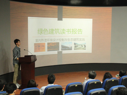 活动第一环节为读书心得分享,建筑1001班张冰之同学、建筑1002班金邵杰同学和建筑1003班蒋宇超同学分别跟大家分享了关于《行走欧洲》、《建筑师的20岁》和《绿色建筑概论》等书籍的读书心得。三位同学通过精美的PPT展示,激情洋溢地讲解了各自对所阅读书籍的感受以及对书中重要观点的理解,引起了在座同学们的共鸣和掌声。