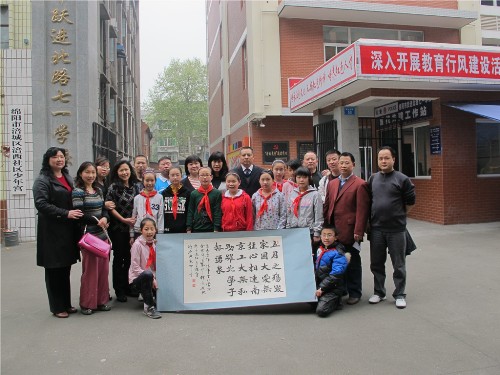 在绵阳期间,张伟郁和张海燕两位老师走访了两所援建公司,在师生的陪同下,参观了公司的新校舍,并与师生合影留念。两位老师代表公司和公司向吴家中学赠送校庆礼品,吴家中学则回赠了“爱与责任”的爱心牌,表示爱心的传承与发扬,并再三表达了对best365官方网站的感激之情。跃进北路公司也向公司赠送了“五月之殇毁家园,大爱无疆心相连。南京工大无私助,跃北学子报涌泉。”的字幅。
