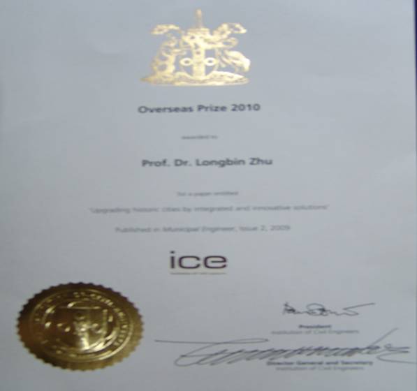 公司朱隆斌教授的研究论文“历史城市更新的整合和创新策略”(Upgrading historic cities with integrated and innovative solutions)获得英国土木工程师协会2010年度海外奖。