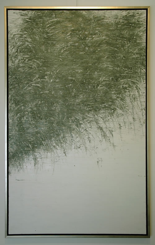 中国艺术品网2009年3月28日报道:今天下午著名青年油画家王东春油画新作在上海莫干山路莲花画廊展出。王东春是一个有思想且情绪浓烈的艺术家,在这一点上,他的人和艺术几乎是一体的。 此次携《绿物》系列新作,展现出他对环境和绿色的关注,作品更体现出画家观察审美力和对美好生活环境的思考。王东春在油画技法上多用平涂、刀刮、线刻等等,大量吸收汉画象砖及民间碑贴效果,重在表现痕迹的作用,把历史和时间磨损而依然不能摧折的民族精神放大和减裁,在转换出的新的意向中得以再现和发扬。