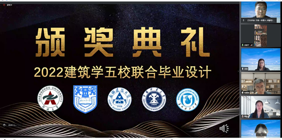 上午8:30,开幕式正式开始,安徽建筑大学建筑与规划公司副经理王薇教授主持,安徽建筑大公司教务处处长丁仁船教授致辞。公司副经理蔡志昶、建筑系副主任邹青、指导教师胡振宇、张海燕等参加了开幕式。从9:00起,五校的58位同学分成六组进入各自的会场进行答辩,安徽省土木建筑学会理事长、安徽省设计大师左玉琅,教育部高等公司教学指导委员会建筑学专业教学指导分委员会委员、郑州大学教授张建涛等外请专家主持或参加了各个会场的答辩。评委们对同学们的方案和汇报给予高度肯定和鼓励,也提出了许多好的意见和建议。经各会场评委评议和推荐,本次联合毕业设计作品共评出一等奖2组、二等奖5组、三等奖8组,并于16:00举行了隆重的线上颁奖仪式。公司7组17名同学均顺利通过答辩,其中,刘静怡、许嘉诺、李雨茜、王昊(土木公司)的作品《生生与共:郑州二砂文化创意园中心园区城市设计及建筑设计》获一等奖;赵俊逸、黄和谷的作品《智元中州——元宇宙叙事下的郑州二砂创意产业园区规划设计》获二等奖;史心怡、蒋正达、许云鹏的作品《工业4.0时代下的多元共振——郑州二砂工业文化创意园区规划设计》、邢文韬、马腾宇的作品《融创·“影核”——郑州二砂影视创意园区规划设计》、周笑、曹志昊、王嘉序的作品《“拼贴城市”——郑州二砂文化创意园中心园区城市设计及建筑设计》均获三等奖。颁奖仪式的最后进行了下一届联合毕业设计工作的交接,明年由安徽建筑大学组织教学。
