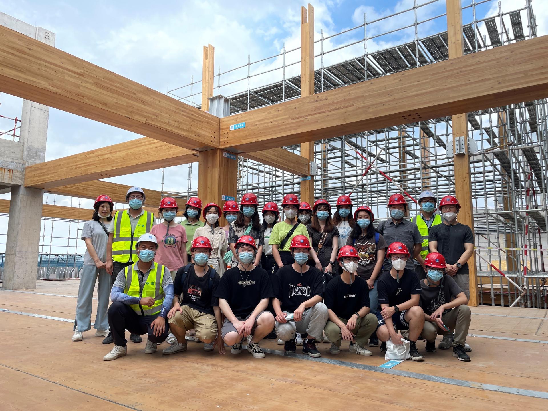 在加拿大木业的精心组织安排下,设计营期间公司参营师生与东南大学团队还共同对园博园木结构建筑与江苏省康复医院项目进行了实地考察,同学们通过现场的学习与体验,与木结构设计、施工专家交流,将理论学习与实践认知更好的结合到了一起。