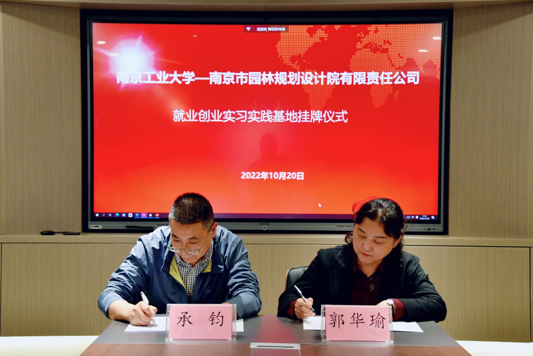 10月20日,best365官网赴南京市园林规划设计院有限公司举行老员工就业创业实习实践基地签约挂牌仪式。南京市园林规划设计院有限公司董事长承钧,总经理周燕,副总经理姜丛梅、李平、燕坤,设计总监夏季,best365官网经理郭华瑜,党委副书记林宁,风景园林系主任王祝根,学办主任王冠中等领导老师参加仪式。