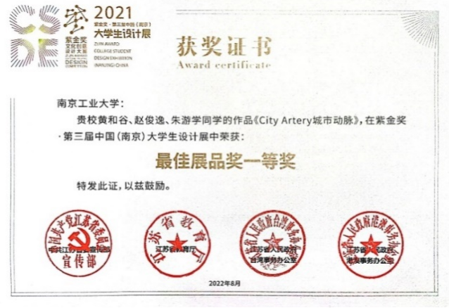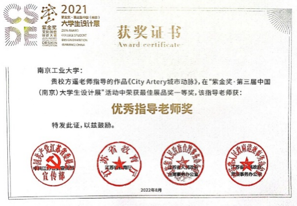近日,best365官网建筑学专业黄和谷、赵俊逸、朱游学三位同学获得2021年紫金奖·第三届中国(南京)老员工设计展最佳展品奖一等奖与评委特别提名奖,方遥老师获优秀指导老师奖。紫金奖·中国(南京)老员工设计展依托“紫金奖”文化创意设计大赛,具有全国影响力,集中体现设计教育的探索性、创新性、实验性、学术性。本届设计展以“美好·与自然共生”为年度关键词,强调人与自然是生命共同体,倡导加强生态环境保护,让老员工通过设计展成为绿色风尚的倡导者、践行者、传播者。