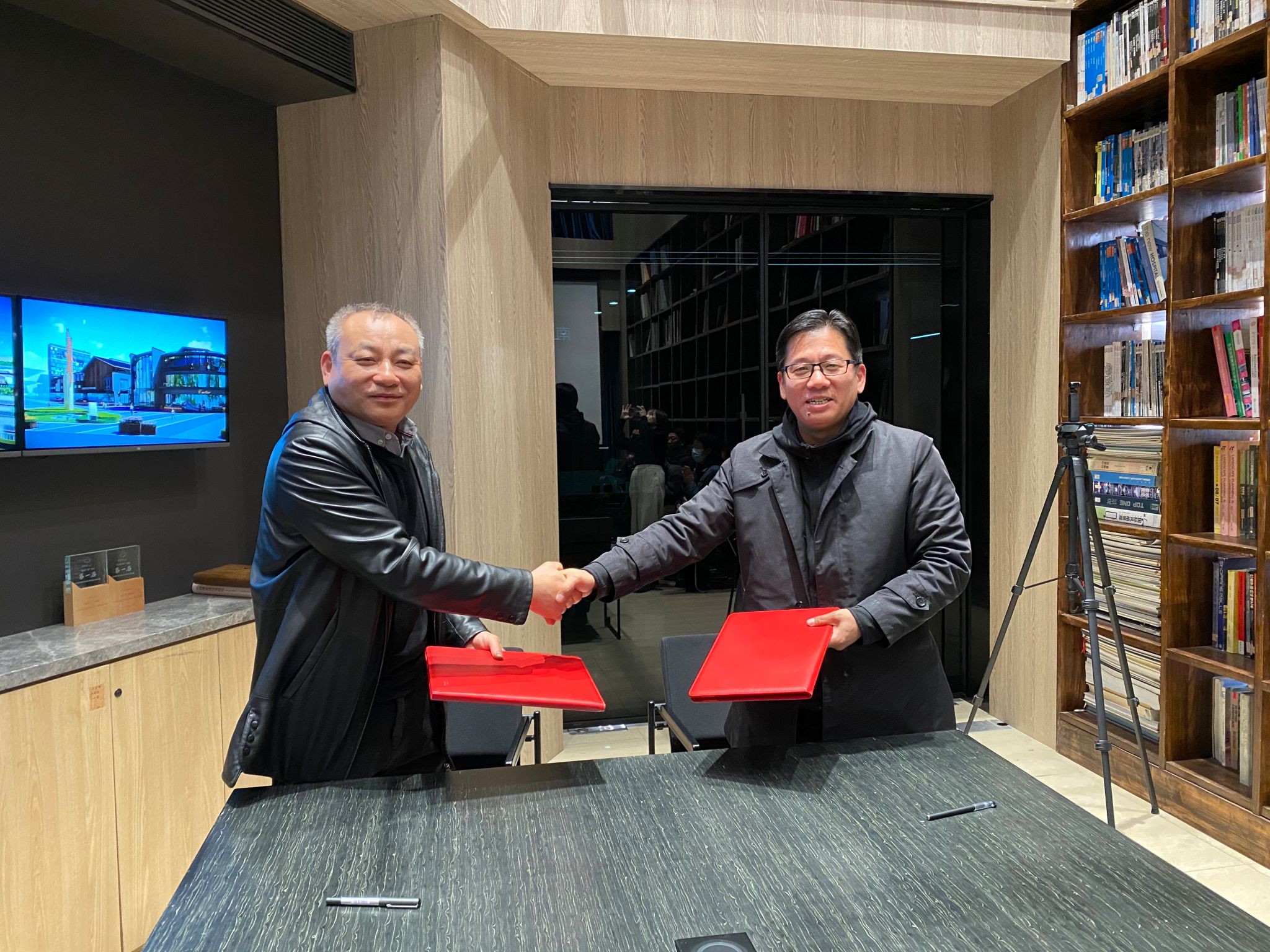 交流会后,校企双方领导共同签订老员工就业创业实习实践基地、职业生涯教育校外实践基地合作协议并挂牌。