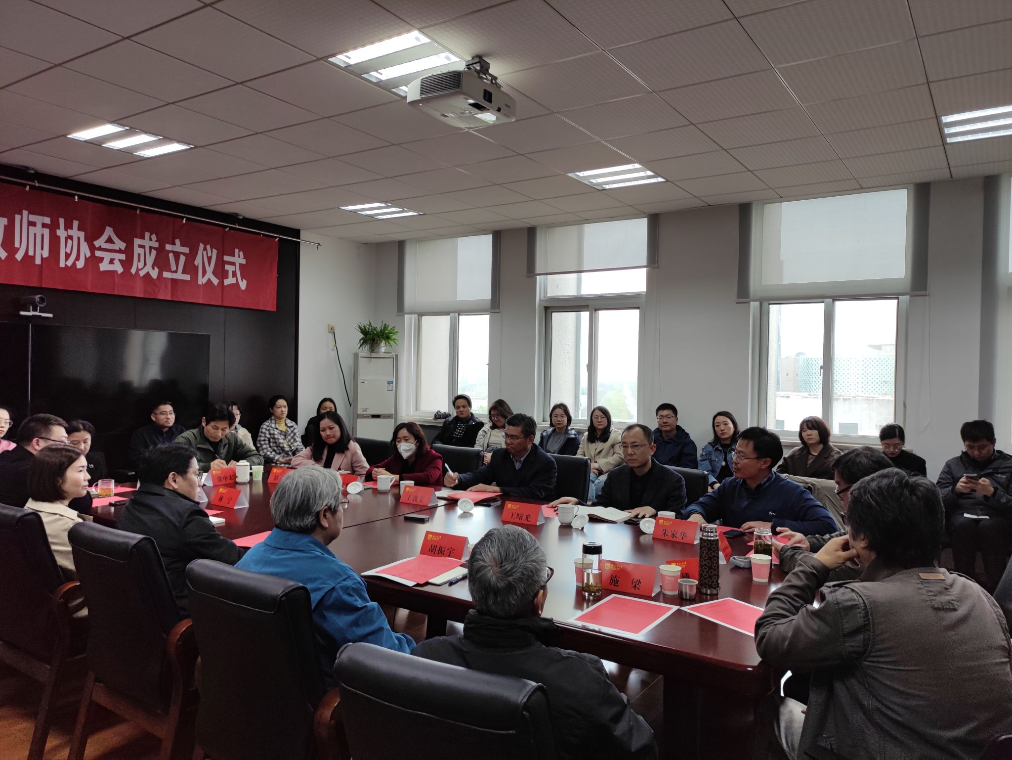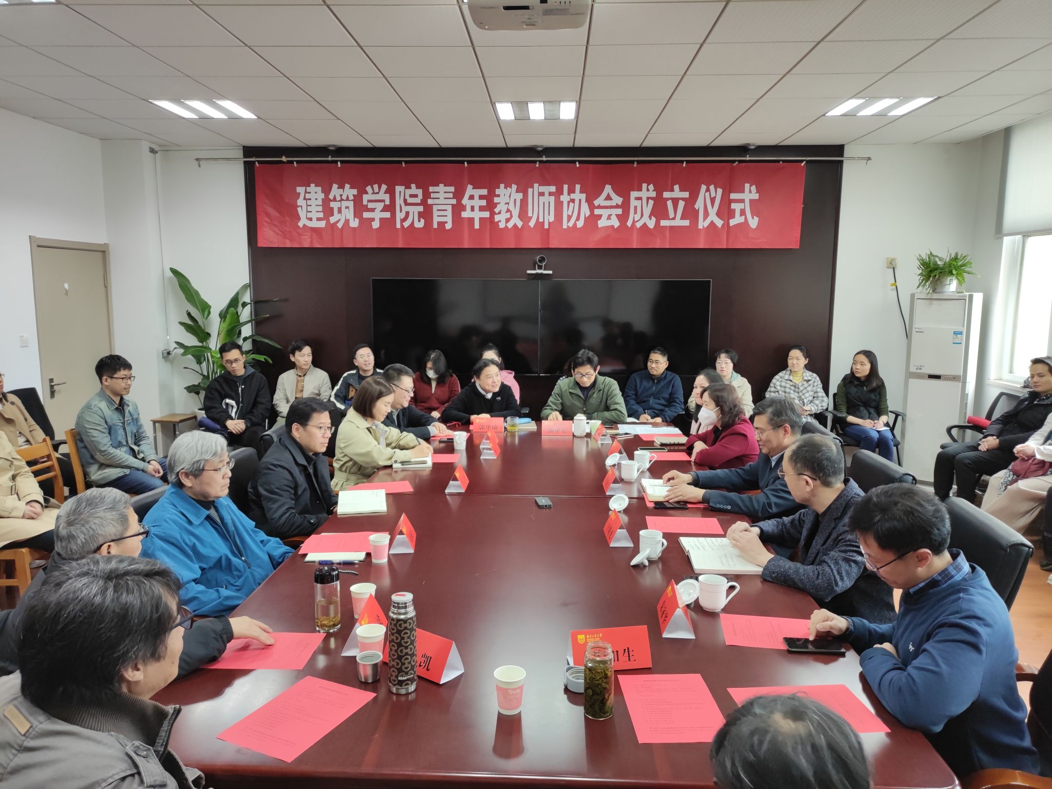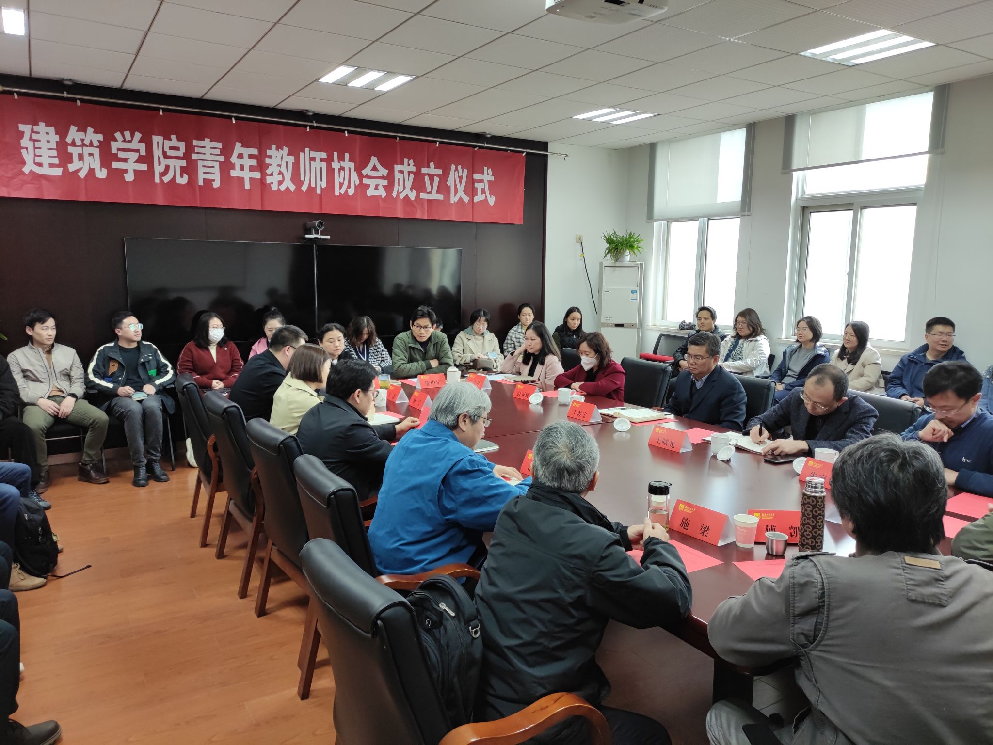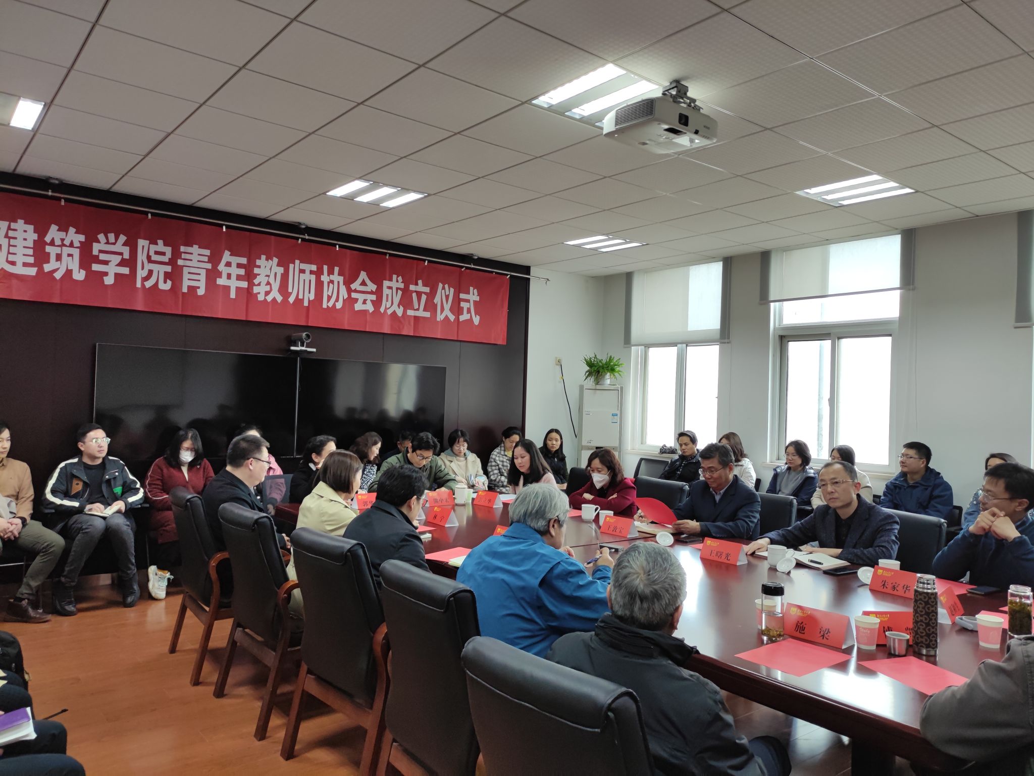 仪式前,青年教师协会召开全体成员大会,通过了协会章程和骨干成员名单。