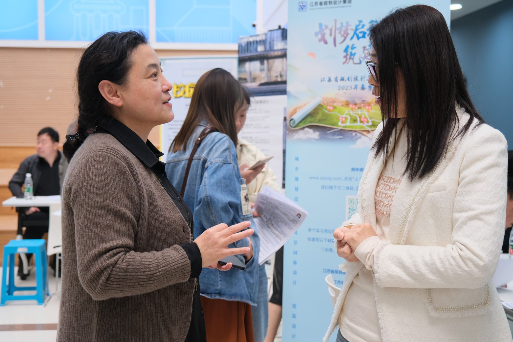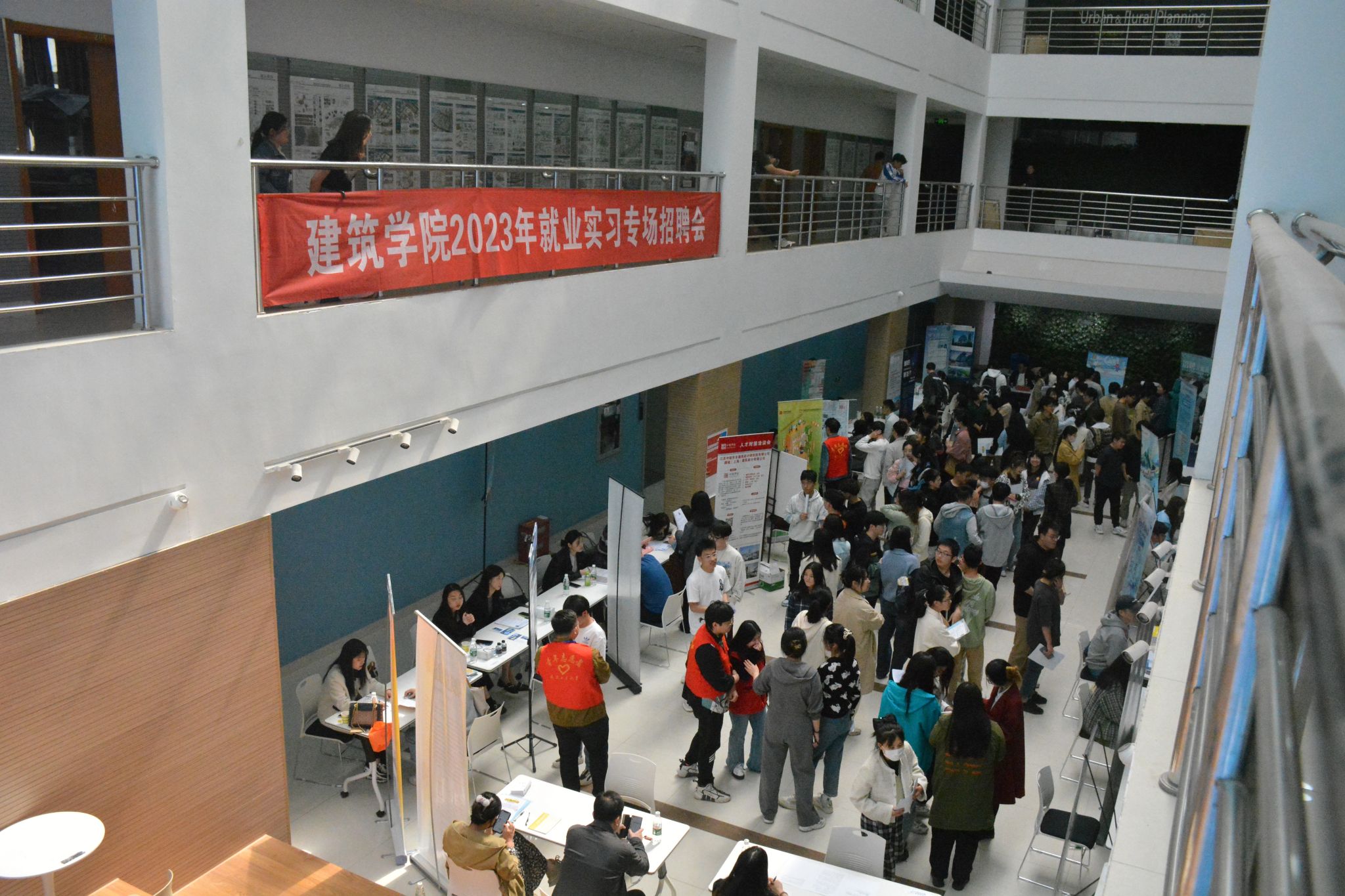 江苏省规划设计集团有限公司、南京长江都市建筑设计股份有限公司、中衡设计集团股份有限公司和启迪设计集团股份有限公司等24家优质企业参加招聘会,提供招聘岗位近300余个。招聘会上同学们主动与用人单位沟通交流,了解企业情况、发展前景等问题,现场互动频繁、气氛热烈。