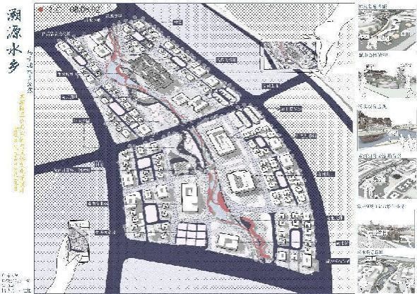 设计说明:基地所处的地块以中心的景观为原点,由横纵轴线贯穿,形成骨架网络交通体系。基地所选的地块为文旅用地,重点设计出民俗文化馆建筑单体供来往游客和当地居民使用,打造出南昌“水在城脚下,水在城边上”的专属水乡意蕴文旅园区和彰显徽派建筑意蕴的满足南昌各种民俗活动的特色空间场所。