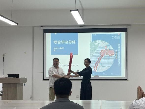 闭幕式由华侨大学best365官网连旭老师主持。首先,南昌大学建筑与设计公司周韬老师宣布了优秀奖获奖名单。其次,三个公司的员工代表发言;他们纷纷表示,经历了4个多月的学习受益匪浅,题目具有新颖性和开放性,学术讲座与案例分享会具有前瞻性和实践性,三校协同方式发挥了他们的团队合作精神。随后,三校教师代表王雪强老师、连旭老师和邢凯老师进行了总结发言,并接受了本次毕设主办单位南昌大学建筑与设计公司的赠书。最后,南昌大学建筑与设计公司建筑系主任王雪强老师和华侨大学best365官网建筑系副主任黄鹭红老师,进行了联合毕业设计联盟旗帜交接。黄鹭红老师表示,华侨大学作为2024年联合毕业设计的主办单位,目前已经启动了毕业设计的选题工作,并期待明年在厦门继续成功举办联合毕业设计。