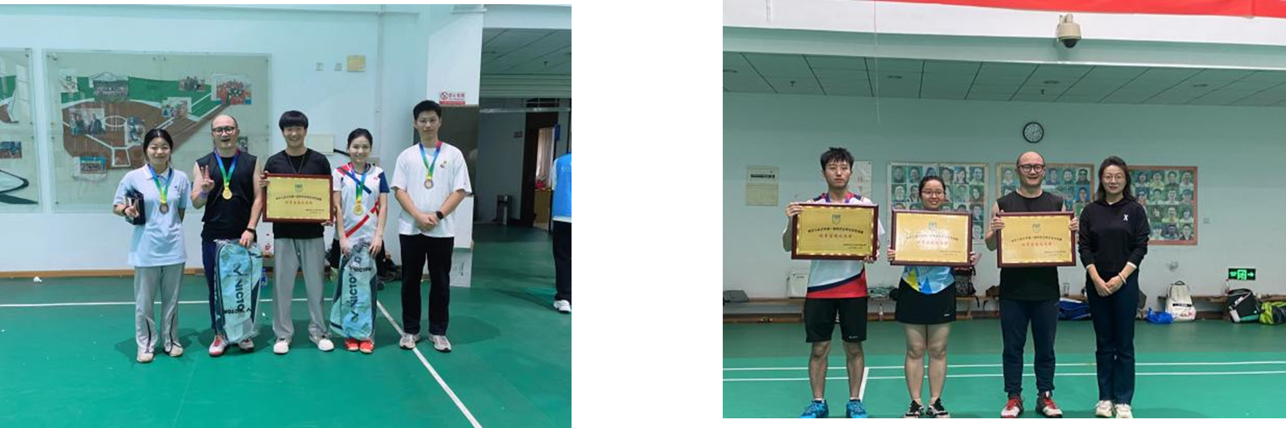 2023年11月4日,以“羽师相约,跃动研途”为主题的第一届best365官方网站研究生师生羽毛球赛在校羽毛球馆圆满闭幕。best365官网代表队由教师吴怡音、孙璨、薛春霖、沈晓梅以及员工徐栋、叶璐、张涛、曹许颖、许心画组成,比赛总积分并列全校第二,荣获体育道德风尚奖。薛春霖、叶璐代表的混双收获冠军,沈晓梅、叶璐代表的女双收获季军。