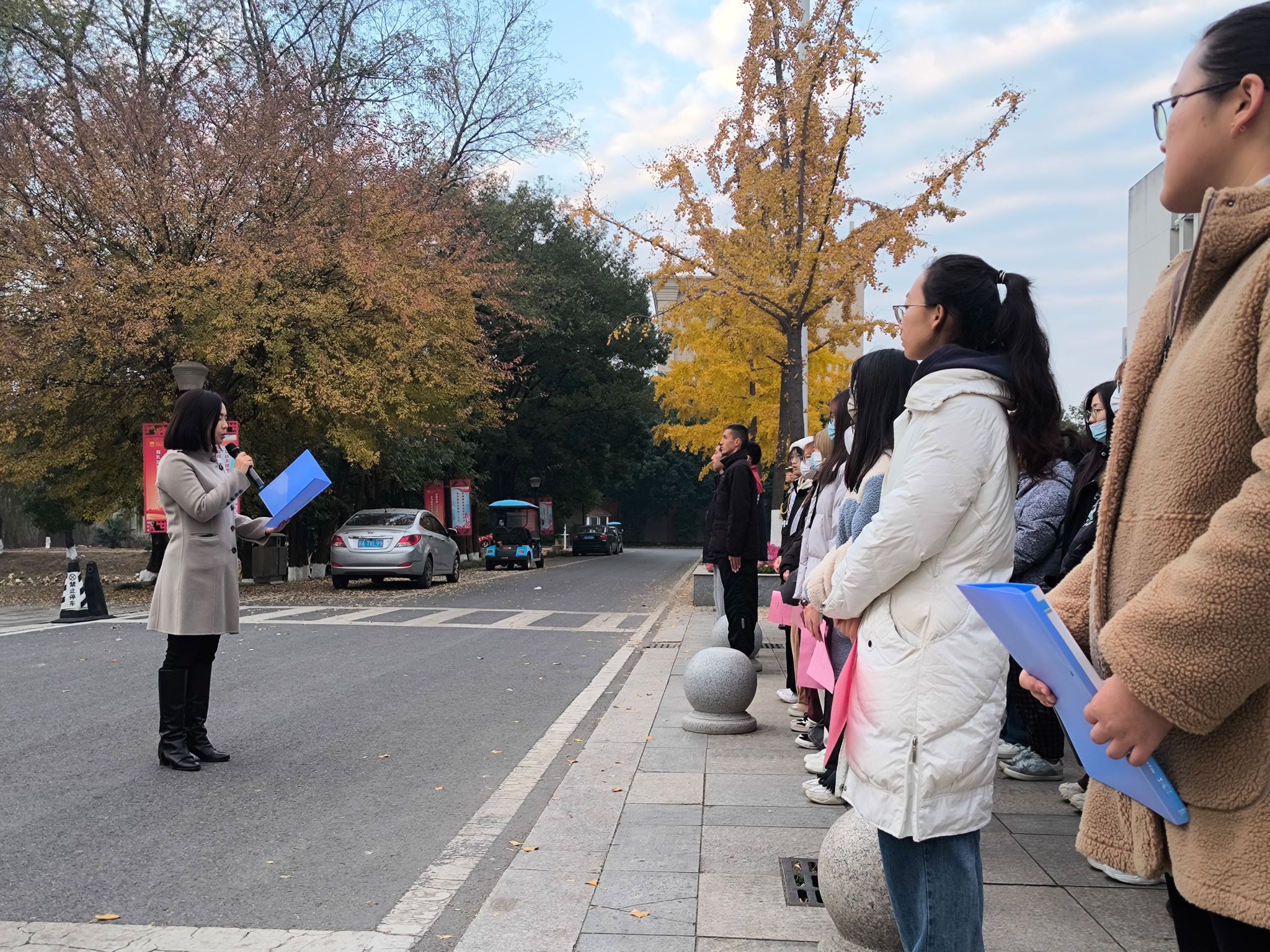 升旗仪式结束后,校国旗护卫队向大家介绍了《国旗法》和《国歌法》。随后,法政公司代表带领同学进行宪法晨读,建筑公司党委副书记林宁、设计类2308姚欣怡分别作为教师代表和员工代表进行了发言。林宁老师从信心、情怀、勇气三个方面对同学们进行勉励和指导,希望同学们不负韶华,不负时代,创造无愧于时代的人生。