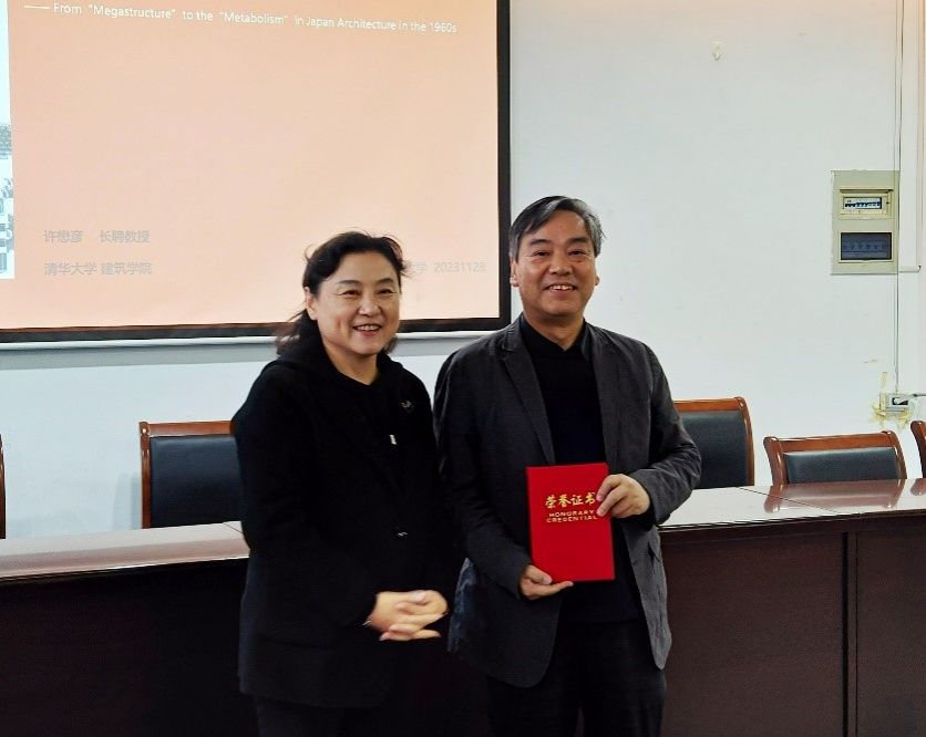 报告开始前,郭华瑜代表公司为许懋彦颁发立学讲堂荣誉证书,介绍了许懋彦的求学经历与研究方向,赞扬了许懋彦卓越的建筑学专业能力,并对许懋彦近年躬耕乡村振兴事业表达了致意。
