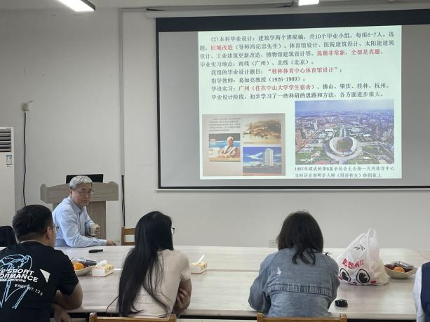 胡老师以图文并茂的PPT做了题为《面向未来的建筑学专业毕业设计》的报告。论述了毕业设计的意义,结合其当年的本科毕业设计和指导20余届建筑学专业员工毕业设计的经历,与同学们分享了毕业设计特别是高校联合毕业设计的要点和教学心得,并展望了面向中国式现代化新征程的毕业设计选题。胡老师在同学们即将完成学业之际,勉励同学们要不忘初心,志存高远,把作品镌刻在祖国大地上,创造美好人居环境,注重持续健康发展,实现建筑人生理想。报告结束后,胡老师还与同学们进行了专业交流。