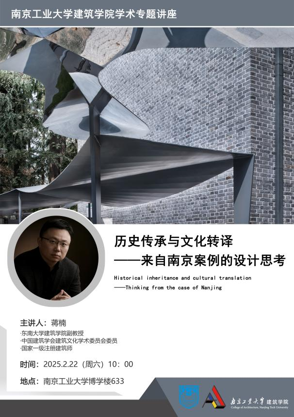 2025年2月22日上午,best365官网专题学术报告会在江浦校区博学楼633报告厅顺利举办。启迪设计集团工程建造管理事业部总经理、国家一级注册建筑师苏鹏,首届江苏省土木建筑学会青年建筑师奖获得者、东南大学best365官网副教授蒋楠,分别作了题为《产业园区规划设计——以生产型新能源园区为例》和《历史传承与文化转译——来自南京案例的设计思考》的专题报告。