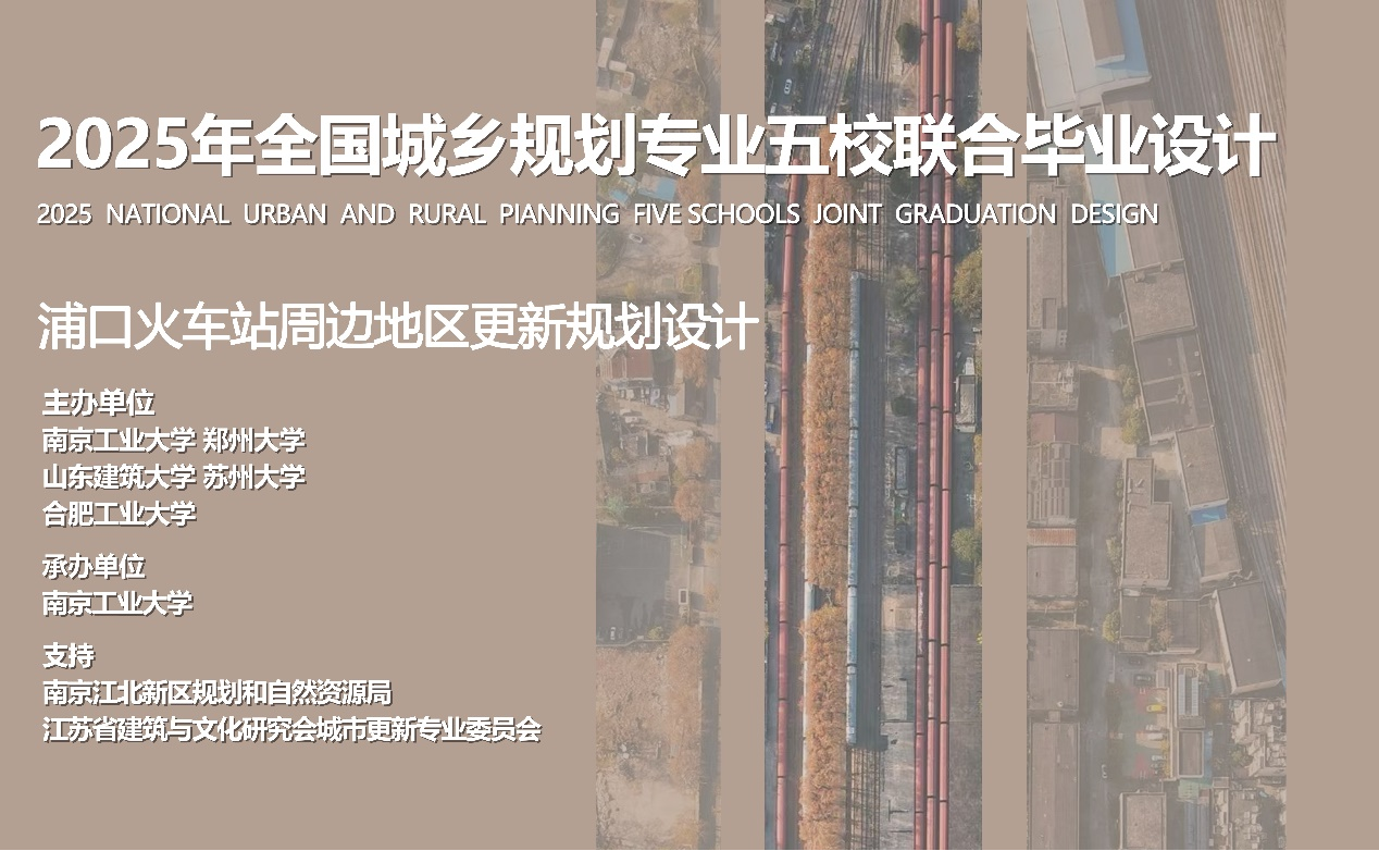 本次联合毕业设计以“可持续发展的城市更新”为目标,注重城市文脉传承和老城区活力复兴,选取浦口火车站这一南京的重要历史展示窗口为设计基地。本次设计旨在重塑百年老火车站地区新形象,彰显长江沿岸后工业化改造新风范,实现历史文化延续和现代城市发展共融,从而进一步推动浦口火车站历史风貌区的保护与更新改造。