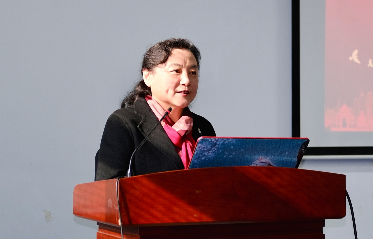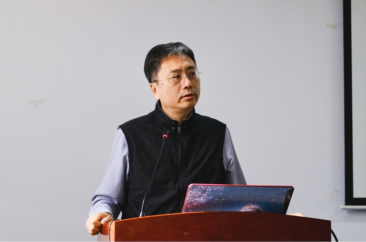 与会师生合影后,进入学术交流环节。南京江北新区规划和自然资源局郑峣主任为师生们详细介绍了江北新区的发展现状及未来规划,并重点解读了基地周边的规划情况,为同学们的毕业设计提供了全面深入的参考。