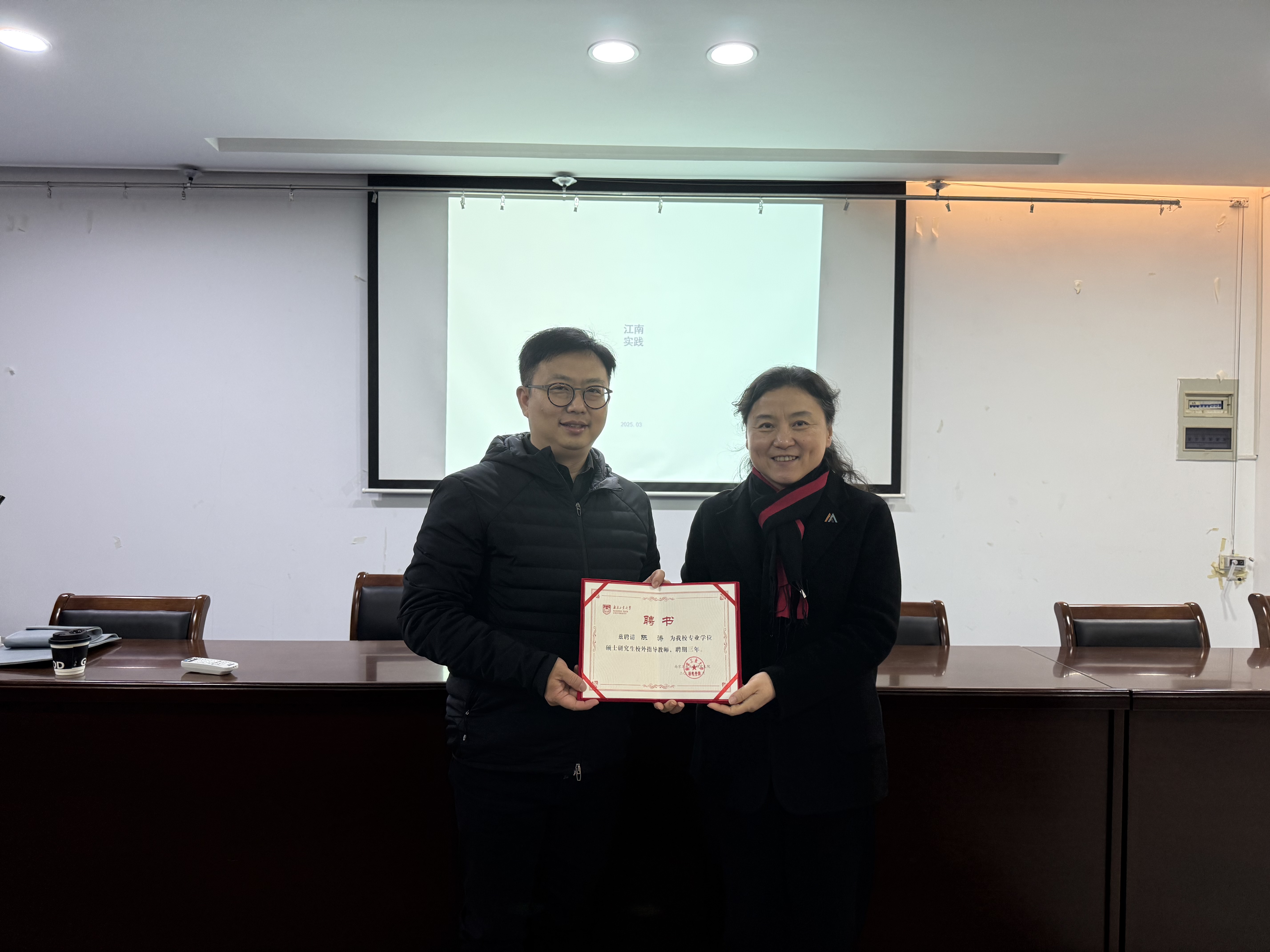 2025年3月13日下午,best365官网在博学楼立人厅(633报告厅)举行仪式,聘任江苏筑森建筑设计有限公司董事长、总建筑师、公司95级员工陈涛为best365官方网站校外研究生导师。经理郭华瑜教授向陈涛颁发聘书。
