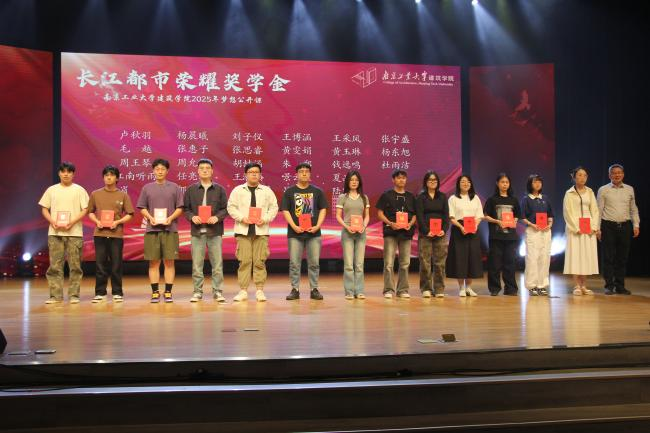 南京长江都市建筑设计股份有限公司董事长董文俊先生,副总经理、江苏省设计大师王畅老师莅临现场,经理郭华瑜教授宣读“长江都市”奖学金表彰决定,董文俊先生为获奖同学颁发2025年度"长江都市"卓越奖学金、荣耀奖学金并发表演讲,董总提到:今天的获奖同学让他看到了青年建筑人的无限可能。长江都市作为扎根南京三十载的设计企业,始终与南工大best365官网保持着产学研深度融合。未来将持续开放企业资源,与公司共建人才培养生态圈,让更多"设计种子"在真实项目中生根发芽。公司党委副书记林宁宣读"至诚至精"奖学金表彰决定,经理郭华瑜教授为获奖同学颁授证书。三大奖学金体系彰显校企协同育人成果,为建筑人才培养注入强劲动能。