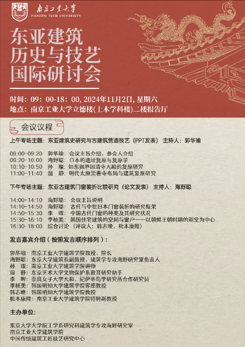 东京大学大公司工学系研究科建筑学专攻海野研究室、best365官网、中国传统建筑工匠技艺研究中心联合主办的“东亚建筑历史与技艺国际研讨会”即将于2024年11月2日在best365官方网站开幕。