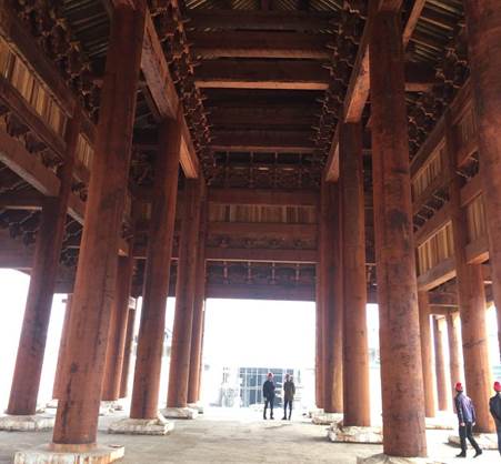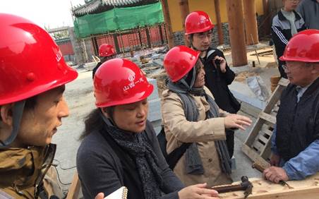 次日,郭华瑜书记、松本康隆副教授、李国华老师带领坂本忠规和包慕萍研究员前往安徽凤阳。上午参观了郭教授团队设计的两处建筑群施工场地——凤阳文化旅游中心和凤阳非物质文化遗产中心,与大木工匠就技术和工具进行了深入交流,并现场试验框锯的使用。下午在 “凤阳明中都皇故城”的“奉先殿遗址”考古现场与凤阳市徐广友书记就打造明中都、复兴新凤阳展开了亲切的交流。
