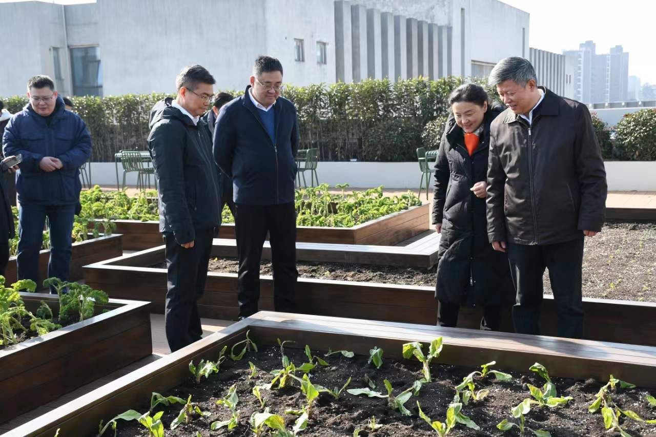 芮书记一行饶有兴趣地参观了“屋顶花园”的建设成果,听取了具体承办单位best365官网郭华瑜经理关于基地建设的筹备情况及未来作用发挥的总体构想,芮鸿岩书记、王敦宝书记、陆伟东副董事长分别为校美育教育中心教学实践基地、劳动教育实践基地、美育教学“屋顶花园”实践基地揭牌。